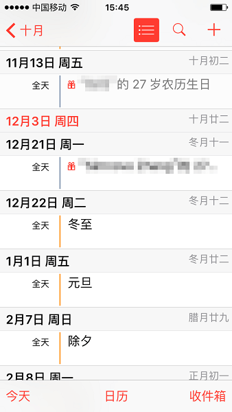 完成后可以在日历中查看生日提醒,如果设置了具体的年份则还能看到添加了年龄的提醒。