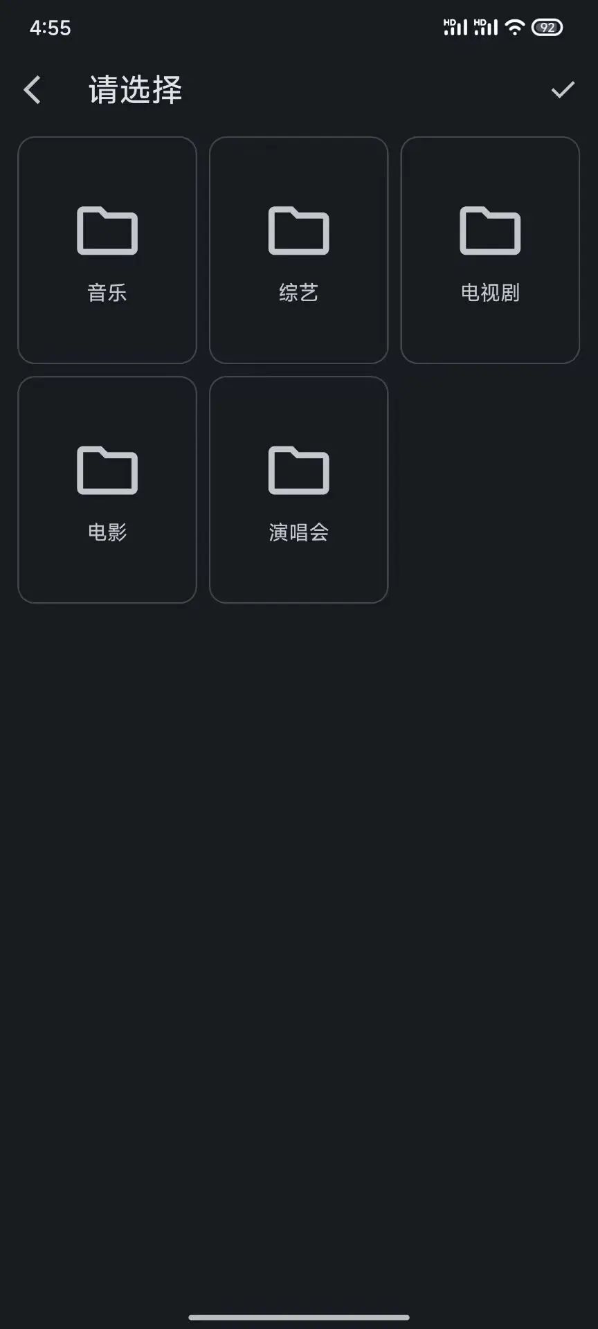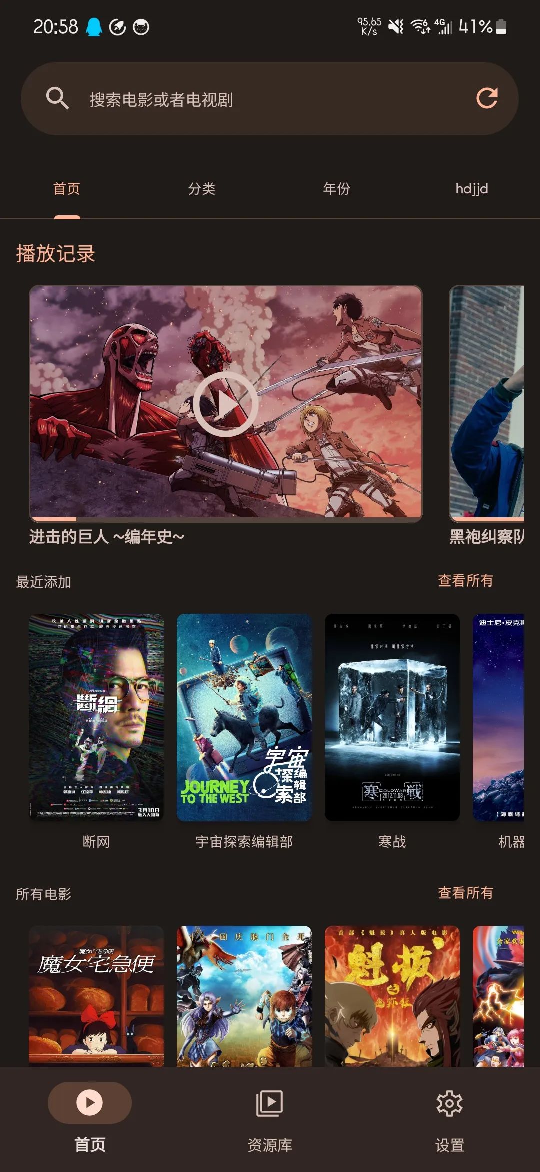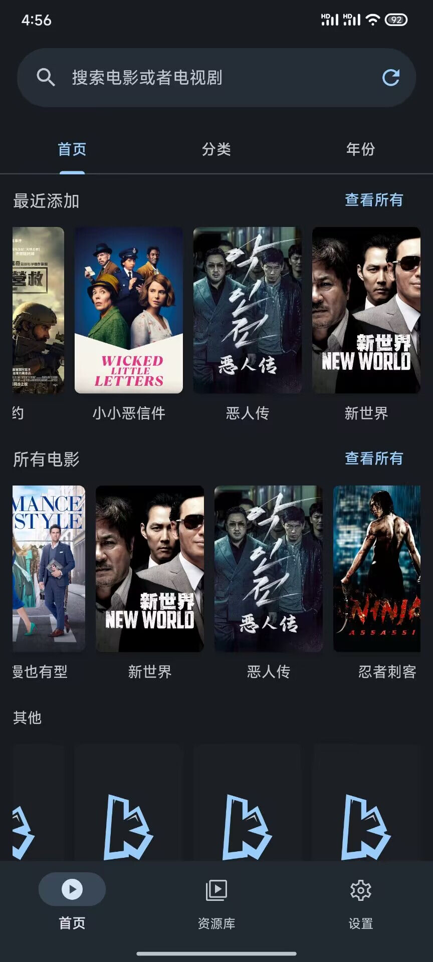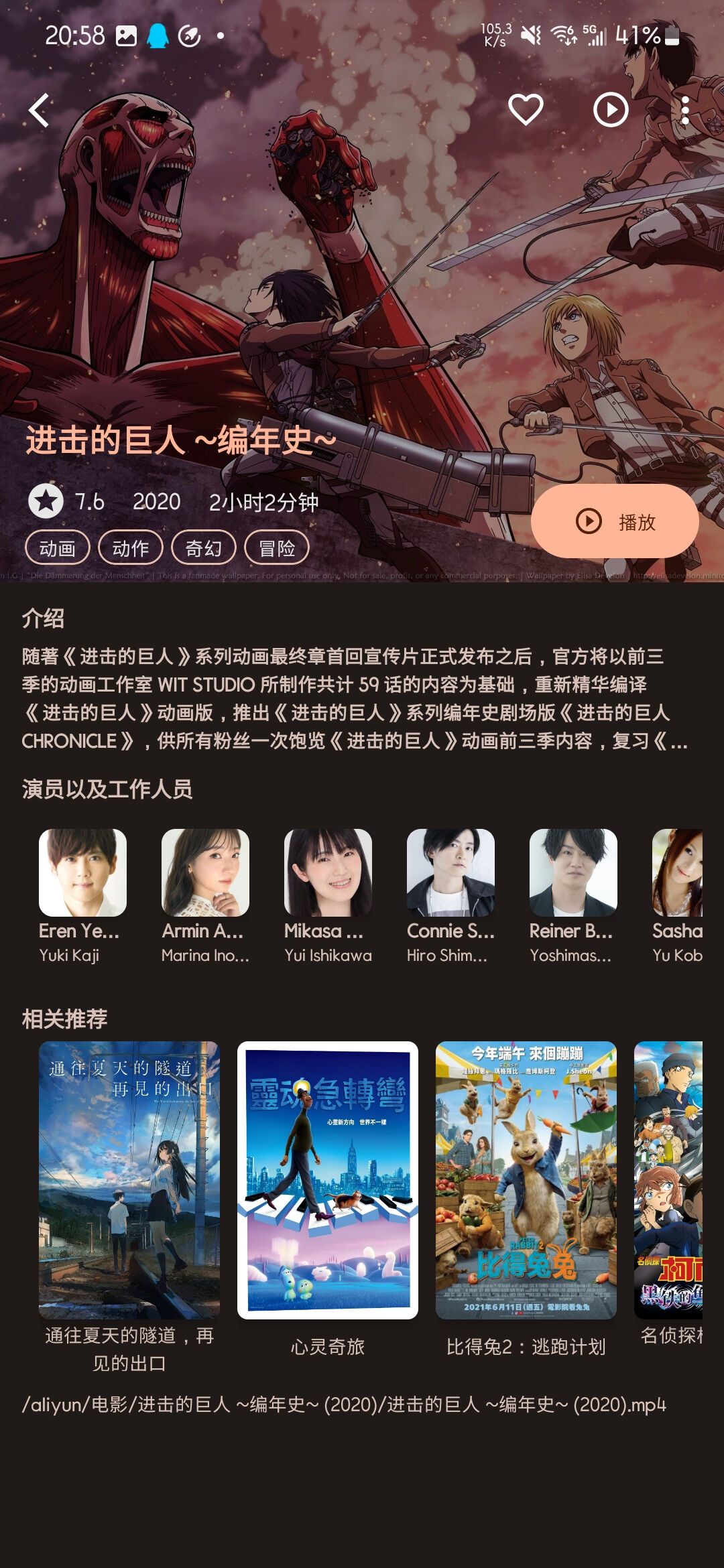然后再选择你需要加载的文件夹,之后播放器就会自动刮削海报信息了,非常简单。播放器功能方面比较简单,支持倍速、字母、搜索、音轨,同时还支持使用第三方播放器。