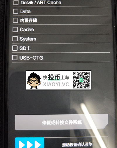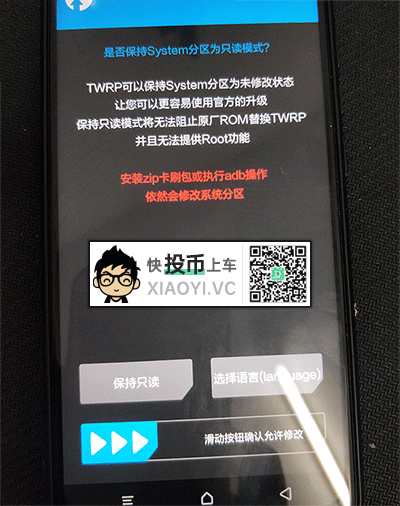 1.我们滑动允许修改,进入第三方「TWRP」后需要先清除数据,点击 “清除” 进入。