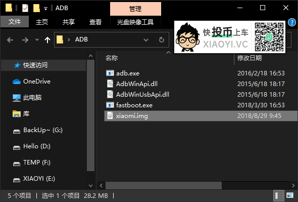 2.把下载的「TWRP」文件重命名简单名称,如 “xiaomi.img” 放到ADB工具包文件夹中。