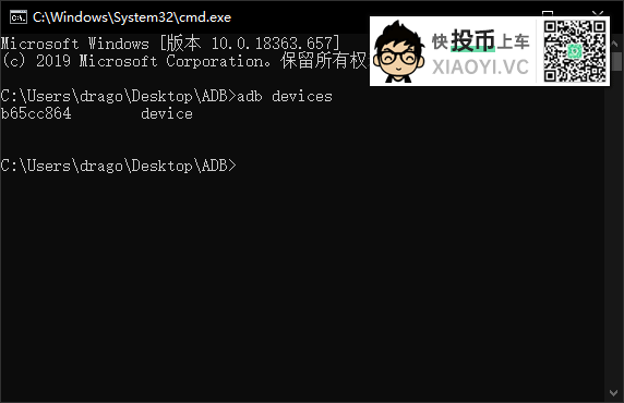 6.CMD命令行输入:adb devices,然后回车。出现 “一串字符 device” 就证明手机已经连接到电脑上了。