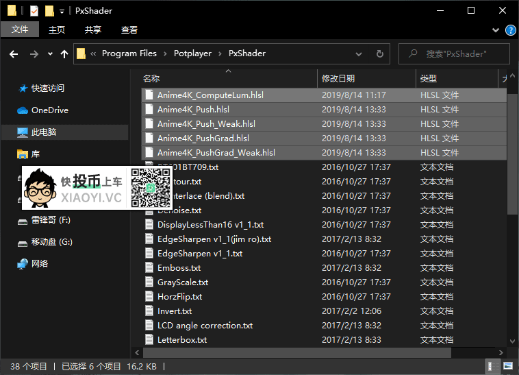 1.下载「Anime4K」插件并把所有文件解压到 Potplayer\PxShader 目录中。