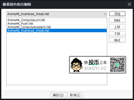 4.开始添加像素着色组合:选择Anime4K的插件 → 点击添加。需要注意下添加的顺序。