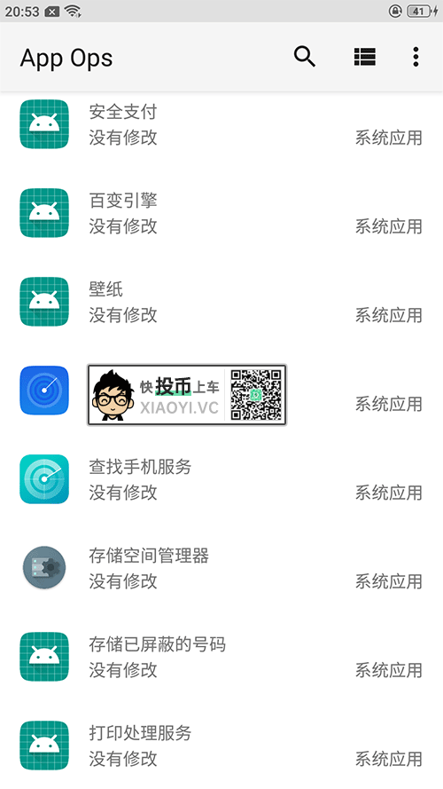 在安卓4.4.2版本之前内置了 "底层权限管理框架" 功能,也叫「App Ops」后面的安卓版本就取消掉了。好在有码农把安卓系统中的「App Ops」 代码迁移出来并制作成了APP应用。