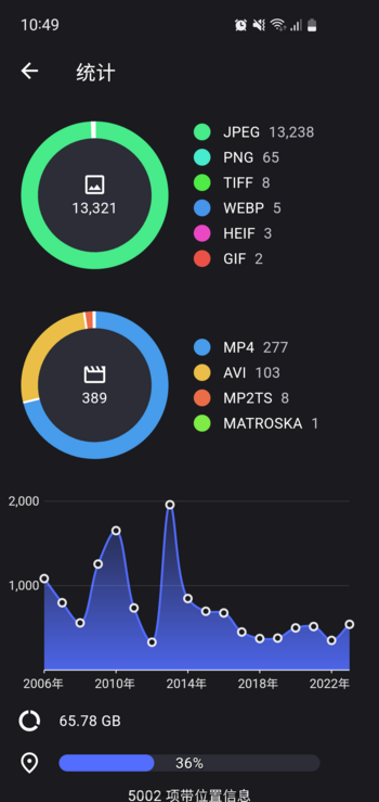 免费开源安卓相册应用「Aves」除了支持主流的图片格式外,还集成了 EXIF 原数据浏览,视频格式。另外还支持 TIFF、SVG、旧版本的 AVI 等格式,支持动态图片、360 视频、全景图,以及 GeoTIFF 等功能。