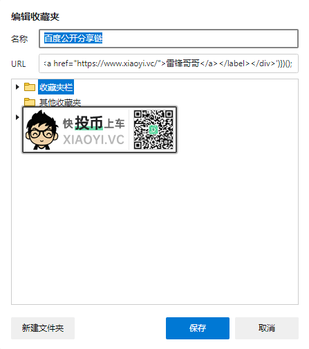 javascript:(function(){$(".share-method-line").parent().append('<div class="share-method-line"><input type="radio" id="share-method-public" name="share-method" value="public" checked=""><span class="icon radio-icon icon-radio-non"></span><label for="share-method-public"><b>公开分享</b><span>任何人访问链接即可查看,下载</span> 来自<a href="https://softgoing.com/">SoftGoing哥</a></label></div>')})();下面是SoftGoing已经添加好的书签了,名称随便你填写吧。URL代码一定不能复制少哦!