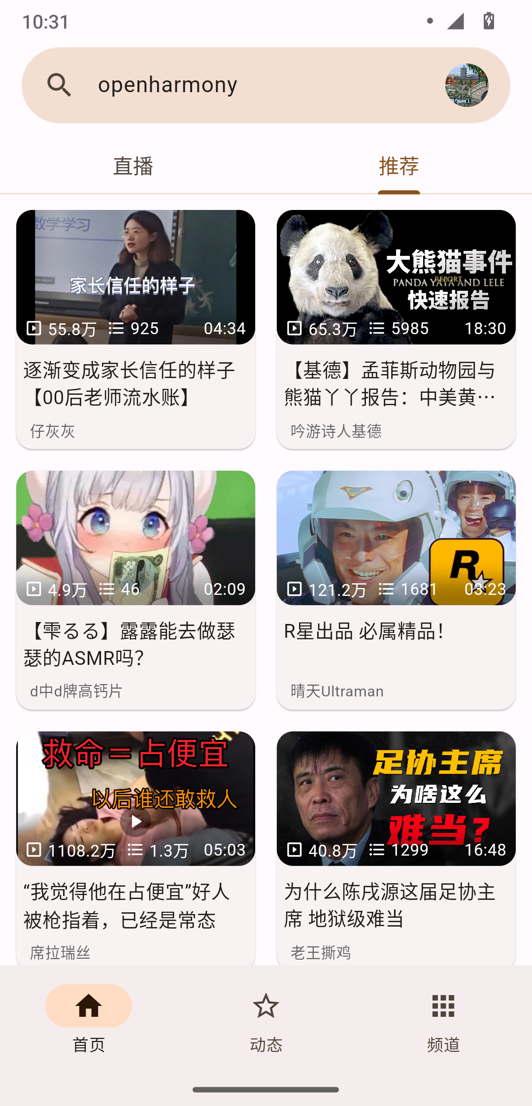 - 主页视频推荐