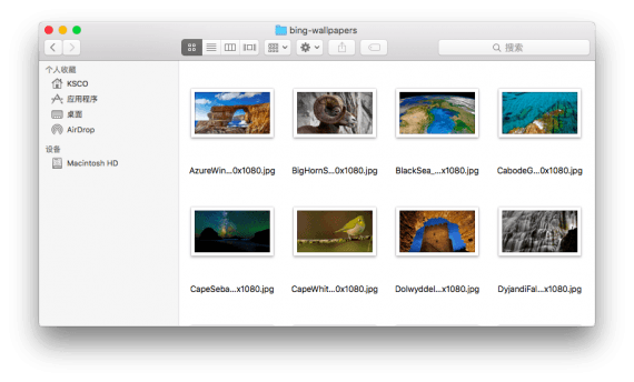 到此为止,所有的跟代码相关的任务都完成了。以后每天都会有一张最新的 Bing 美图下载到你的图片文件夹下的 bing-wallpapers 文件夹中。等积攒了够多张以后,你就可以用它来做壁纸文件夹咯。