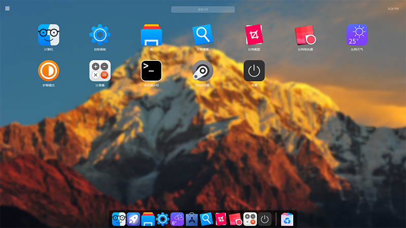 在DOCK栏也提供了 MacOS 的 LaunchPad 界面,可以设置动画效果,添加应用图标,设置背景透明度、图标间距等。