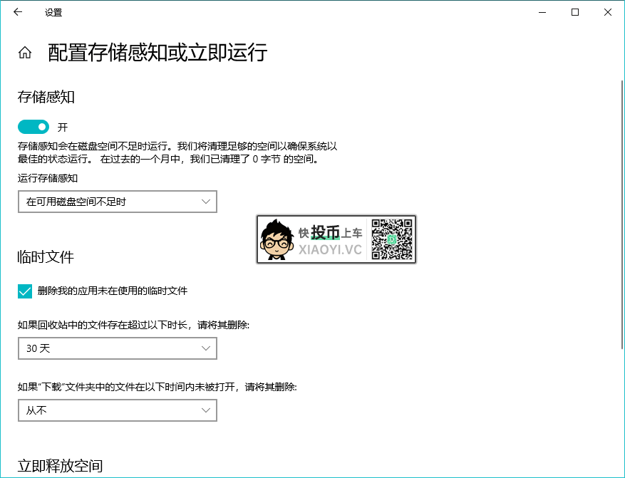 加上现在大家用的固态硬盘容量一般不会太大(家里有矿的土豪不要说话)C盘很容易就爆红,而微软也意识到这个问题,在「Windows 10」增加了"存储感知"功能,当磁盘容量不足,自动清理回收站和下载的文件,然而也清不了太多垃圾文件。
