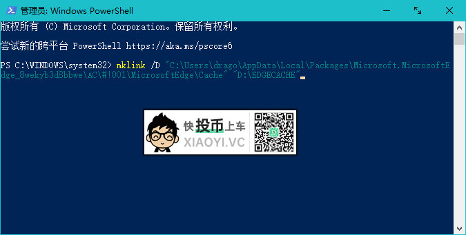 mklink /D "C:\Users\用户名\AppData\Local\Packages\Microsoft.MicrosoftEdge_8wekyb3d8bbwe\AC\#!001\MicrosoftEdge\Cache" "D:\EDGECACHE"这样就把缓存目录链接到D盘EDGECACHE文件夹了。注意:使用命令前,需要先清理浏览器缓存,并关闭浏览器。