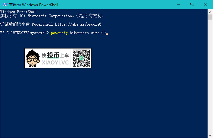 接着快捷键Win+X → Windows PowerShell(管理员) → 输入命令 powercfg -h off,重启电脑就会清理这个文件了。要重新开启的话,命令输入 powercfg -h on。