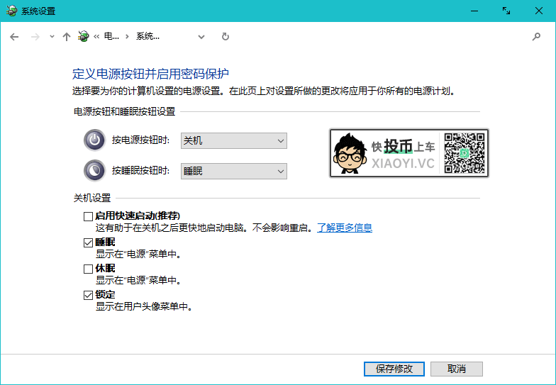 快捷键Win+X → 电源和睡眠 → 其它电源设置 → 选择电源按钮的功能 → 取消启用快速启动