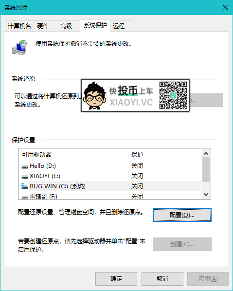 系统自带的还原点功能会在你安装驱动、补丁时候建立一个还原点。不过这个还原点实际上很多时候,不能拯救你崩溃的系统,直接关闭吧。