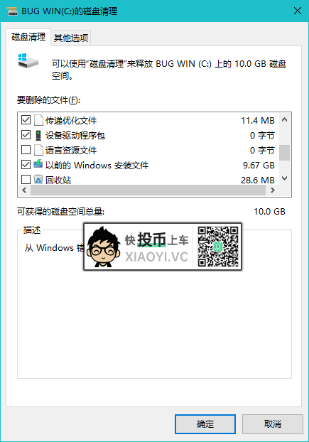 C盘 → 右键属性 → 磁盘清理 → 清理系统文件,选择你要清理的内容(直接全选就完事了)