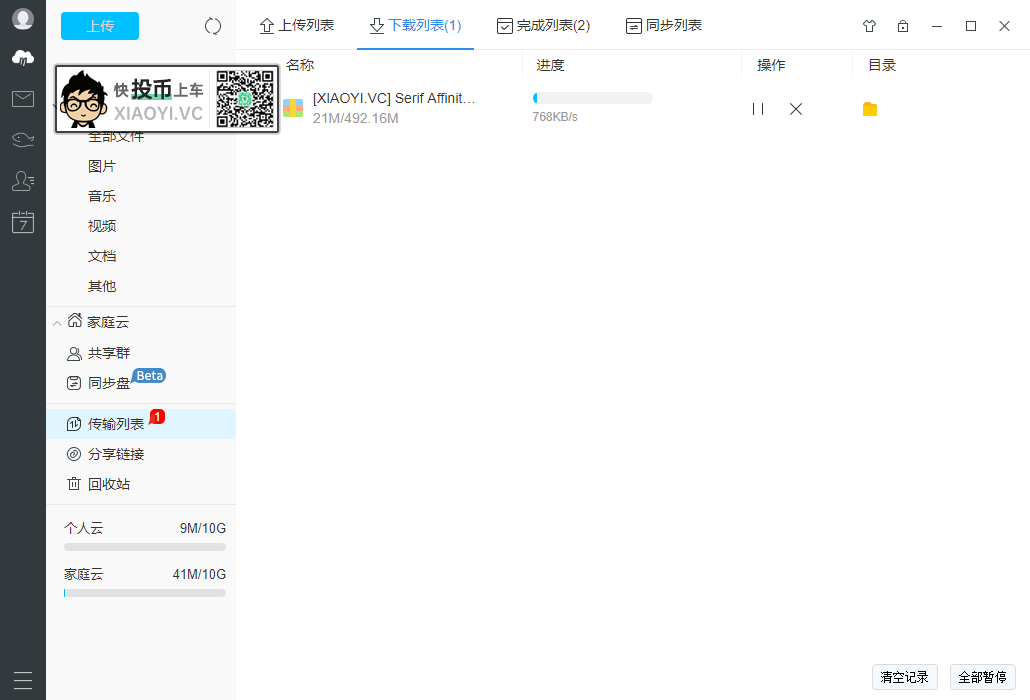 客户端下载速度方面,也限制在 600-800KB/s 左右,比「度盘」要良心点,但还是没有「天翼云」给力。