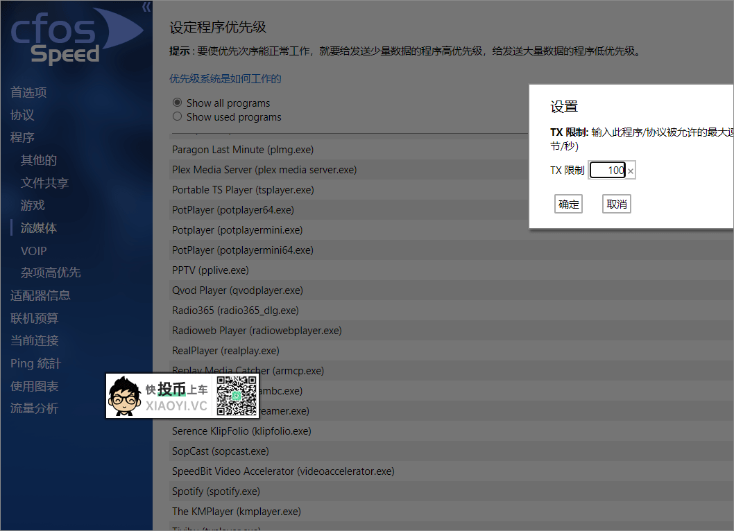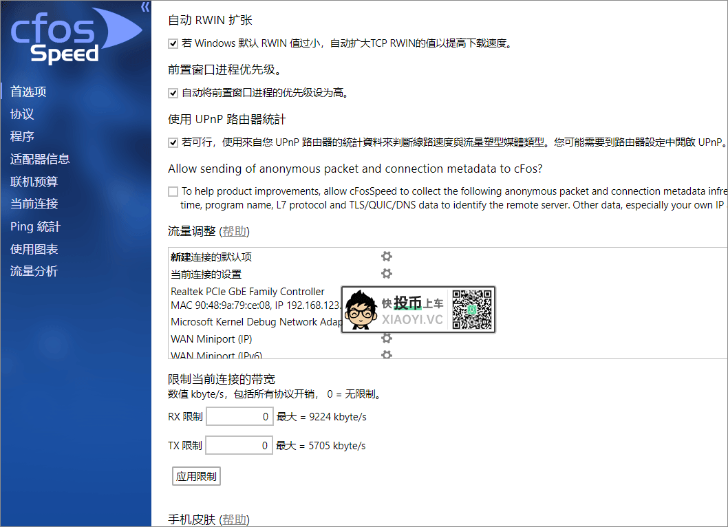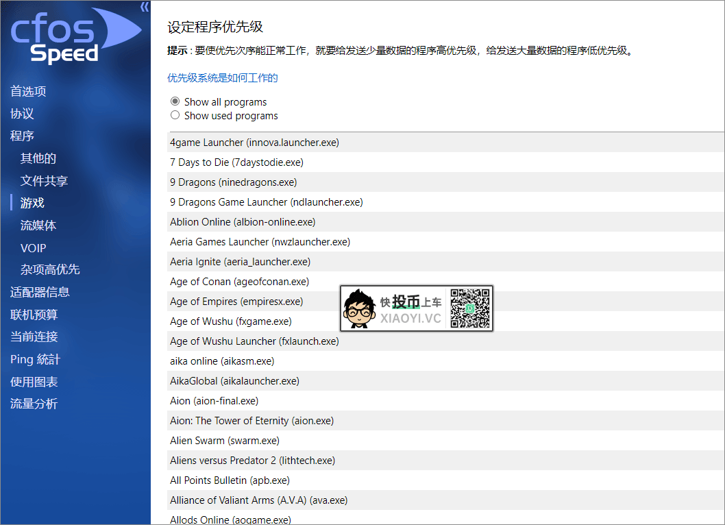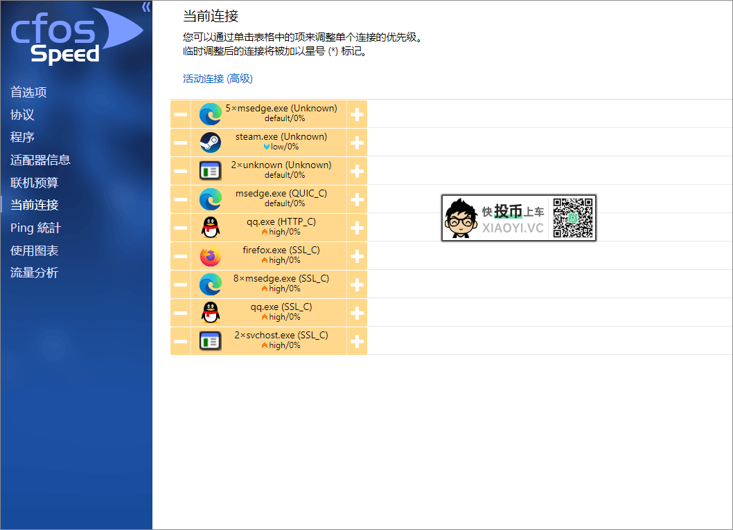 「cFosSpeed」原理简单说就是对程序的上传下载数据包进行优先级设置,使你的网络更加顺畅。