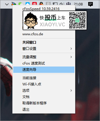 「cFosSpeed」功能看着很复杂,其实设置很傻瓜化,在「cFosSpeed」网站中有教程。可以右键「cFosSpeed」图标 → 速度向导,点击即可进入官方的设置向导方法。