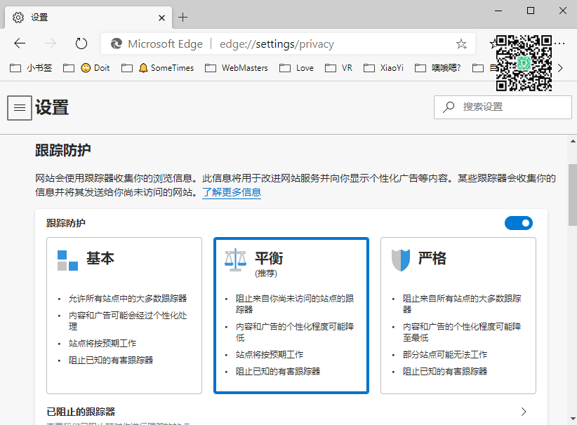 为了更好的保护你的隐私「Chromium Edge」加入了全新的「隐私和服务」页面。默认为平衡模式,如果你需要更安全隐私,可以设置严格,拒绝一切广告采集推送。