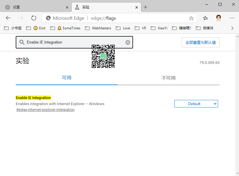 然后在地址栏输入:edge://flags/,找到 Enable IE Integration 开启。