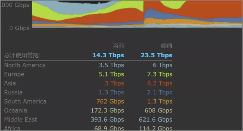 游戏刚上线 Steam 平台预载时,下载峰值带宽冲上 23.5Tbps,创造了 Steam 平台下载带宽峰值记录,这仅用了三个小时,幸好 G 胖有所准备,Steam 并没有发生大的崩溃问题。
