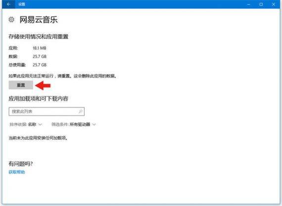 【5】我安装的是UWP版应用,大小只有18MB,缓存数据却达到了25GB。我狠心的点了“重置”。