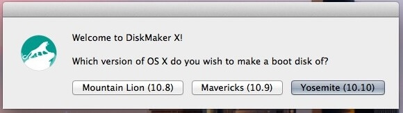 你只需选择对应的系统即可开始制作可启动的OS X安装U盘,如果你需要查看更详细的步骤可参看——《[教學] 利用 DISKMAKER X 輕鬆製作 10.8、10.9、10.10 開機碟!(已更新10.10 YOSEMITE對應)》