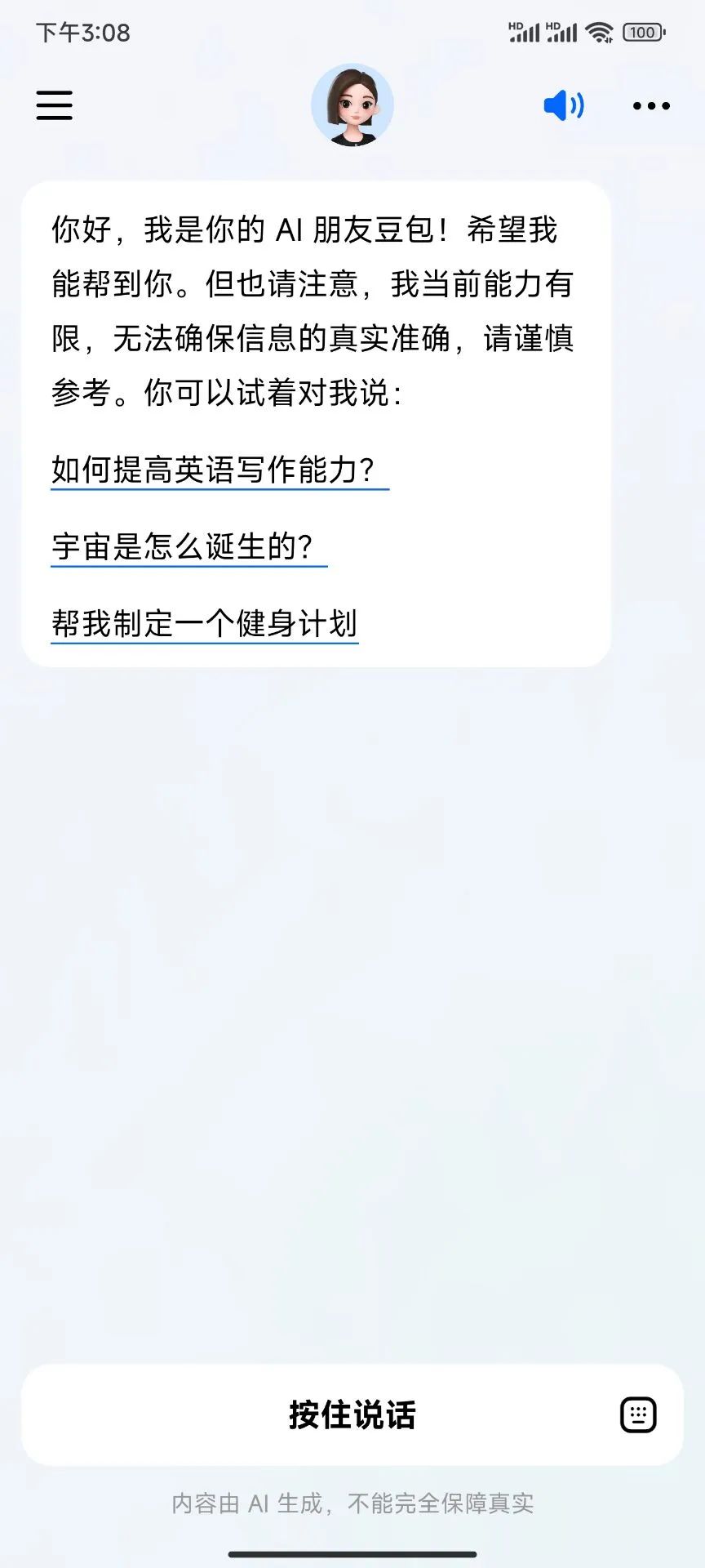 [安卓] 豆包 - 字节跳动免费 AI 对话工具「豆包」是字节跳动最新推出的免费 AI 对话工具,提供网页端、iOS 和安卓应用程序,目前已开放安卓端的下载通道。拥有文生文、文生图的功能。 聊天界面包括 AI 机器人“豆包”、英语老师 Elaine、全能写作助手、超爱聊天的小宁等。这些智能体可以为用户提供多语种、多功能的 AIGC 服务,包括但不限于问答、智能创作、聊天等。下载地址: https://www.doubao.com