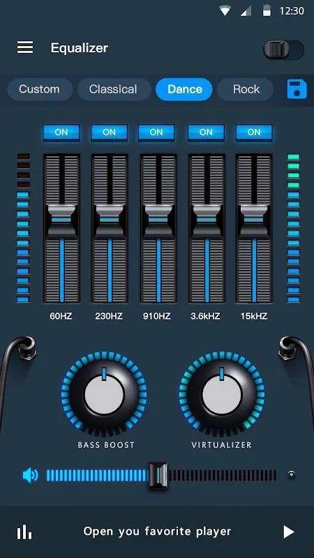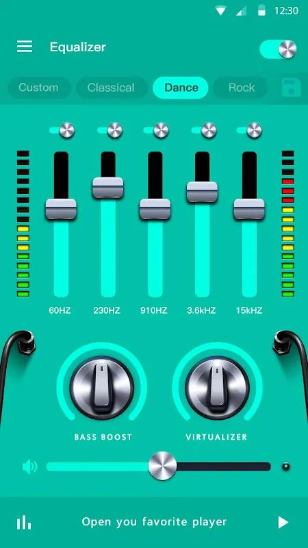 - 五波段均衡器调节,20+种专业预设效果,感受不同的音效;更可保存自定义预设,创建自己喜欢的预设效果