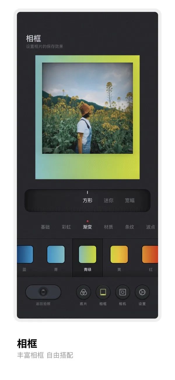 支持底片和相框切换,还可以进行添加文字和涂鸦,导入和编辑以往的照片,定格回忆里的瞬间。