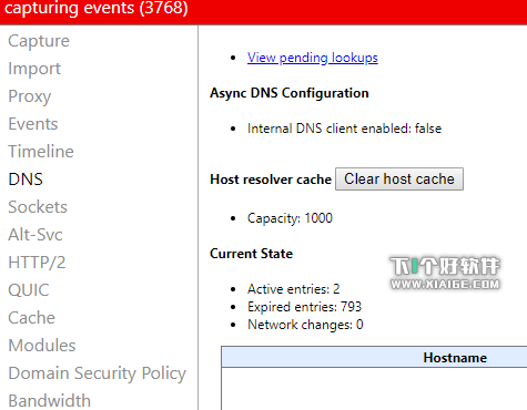 2.然后就可以看到 Chrome 浏览器 DNS缓存记录了,点击「Clear host cache」按钮就可以完全清除所有 Chrome 的 DNS 缓存记录。