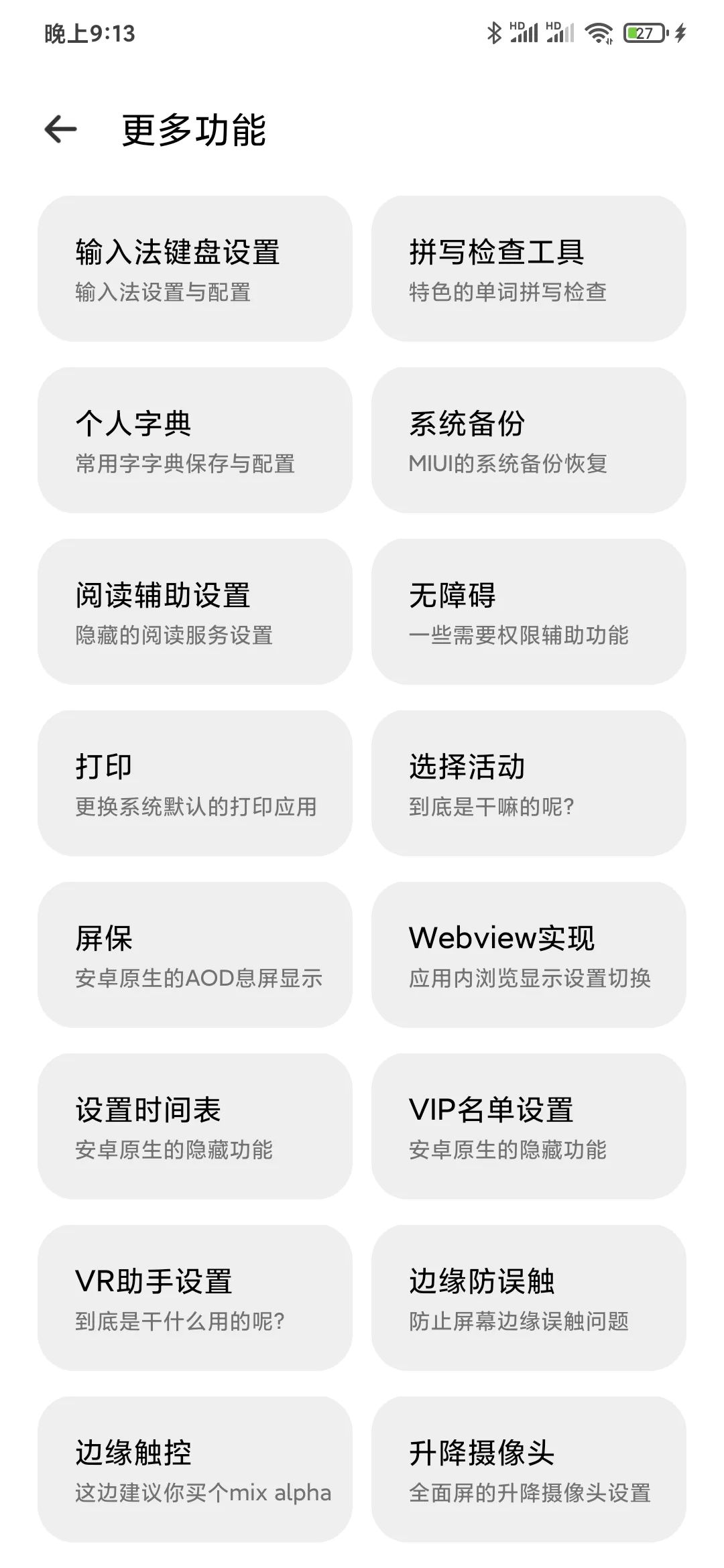 这里给大家分享酷安老哥制作的「高级设置Plus」应哟,把你系统里面的所有功能设置全部列出来,一目了然。