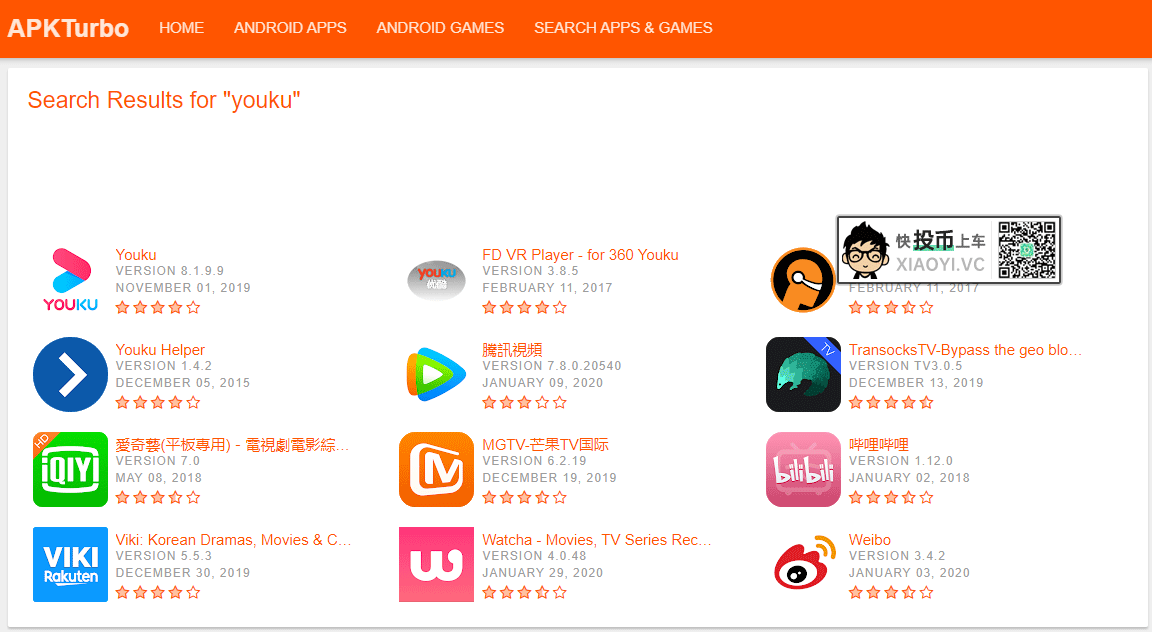 「APKTurbo」里面的分类超级详细,可以通过搜索应用名、包名来搜索应用下载。还支持提供了历史版本、二维码扫描下载方式。因为是国外网站,下载速度会有点慢。
