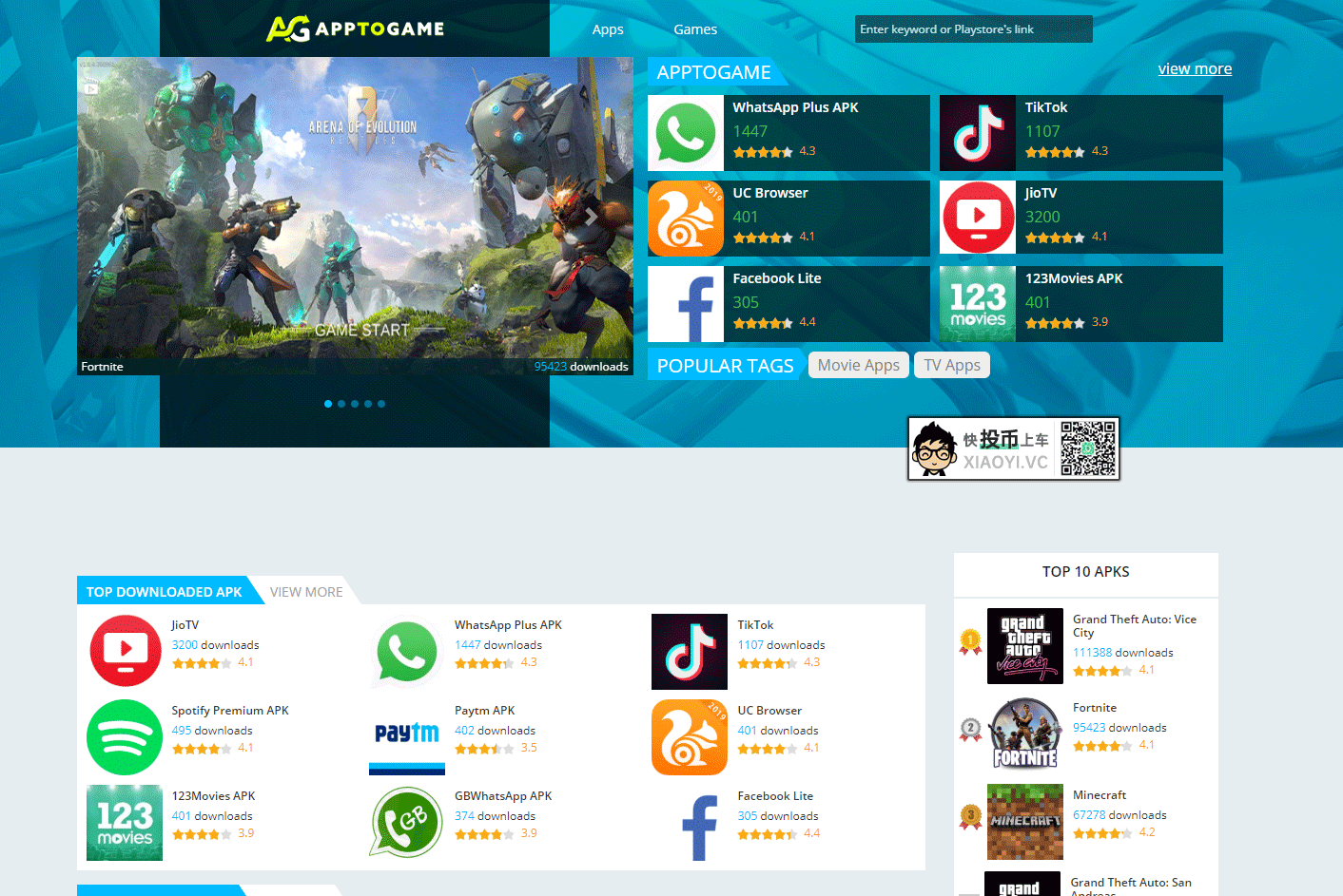 「APPTOGAME」支持输入应用名或者谷歌商店APP的链接来搜索下载,不过这个网站速度有点慢,里面的APP也不是很多,可以当作备用吧。