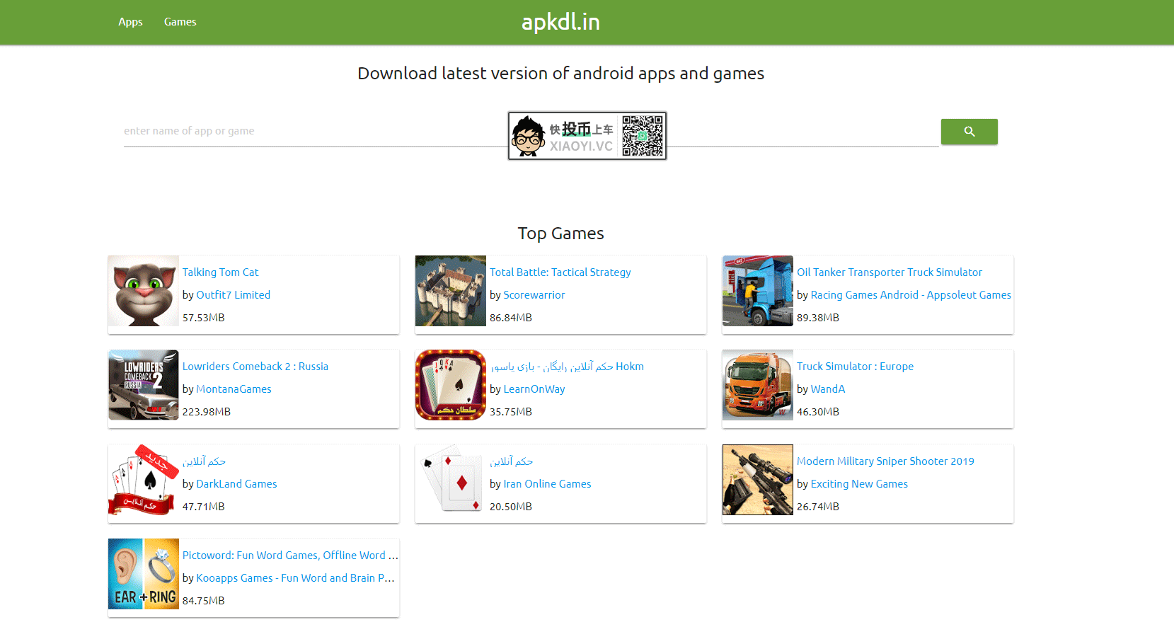 「apkdl.in」网站界面清爽无广告,也是支持在线解析谷歌商店APP的网站,绝大部分APP与游戏都可以搜索和下载,并且是最新的版本。解析速度有点慢,下载速度还可以。