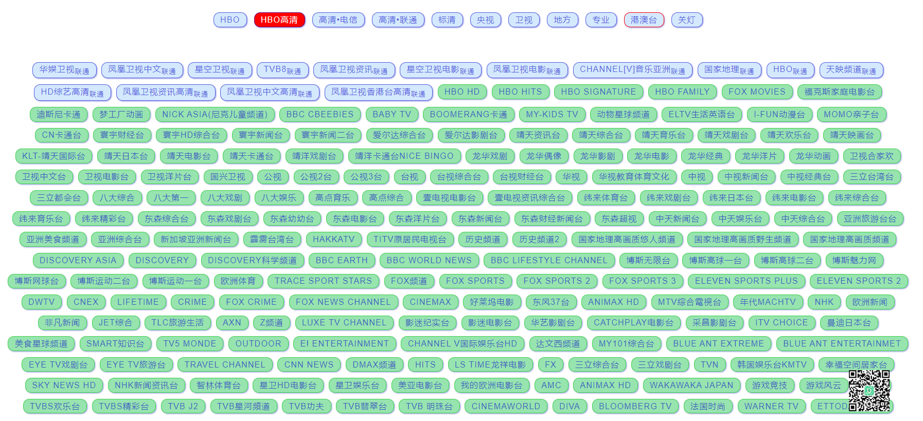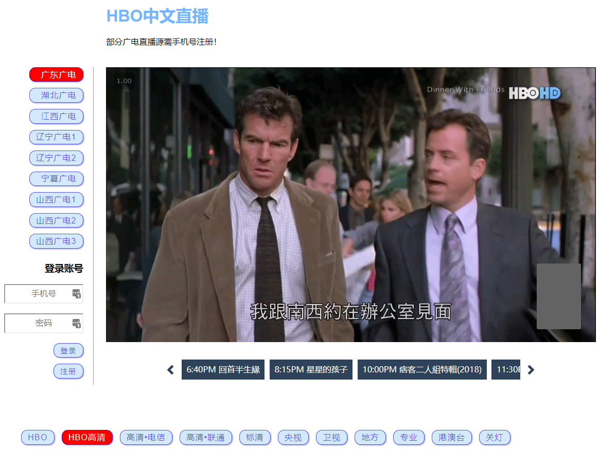 频道上默认有HBO直播 + 集各广电直播源,包括有港澳台哦,不过有些广电的直播源是需要注册账号才能看的。