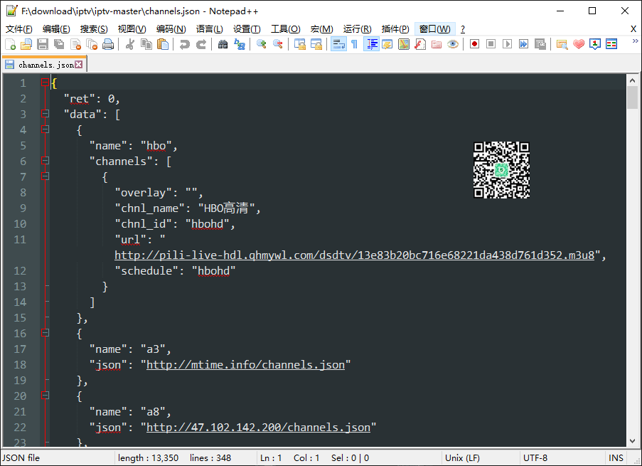 添加/修改本地直播源,需要打开channels.json文件,然后自行添加。