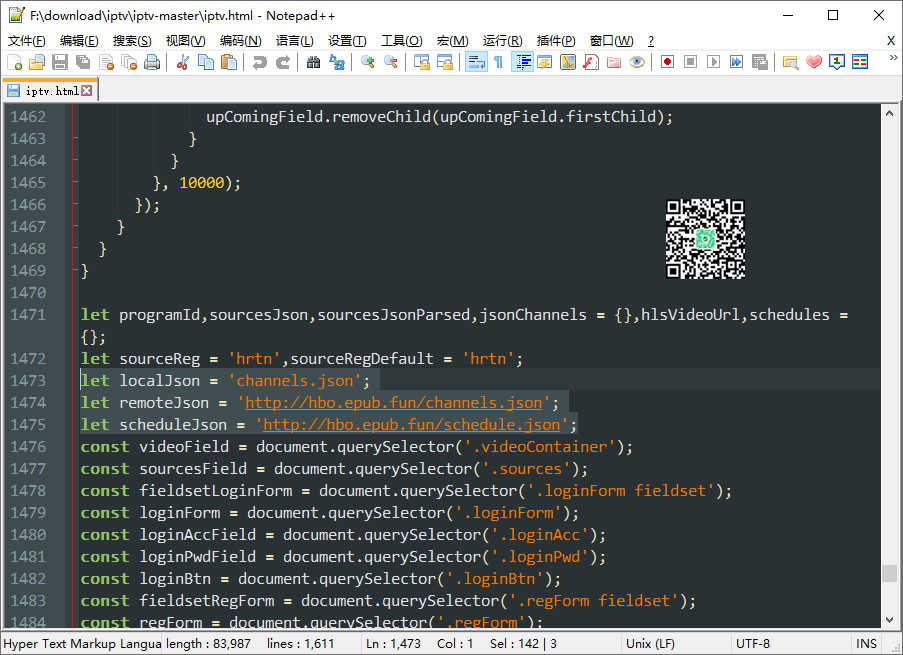 修改远程源地址,打开 iptv.html 或 (部署的用户需要打开 js/index.js)文件,找到 remoteJson 自行替换。