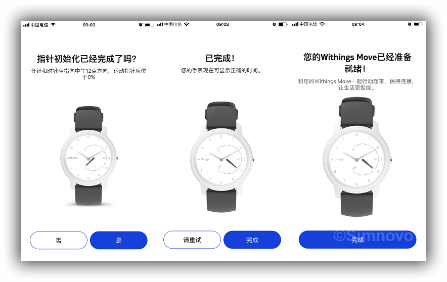 1、开启手机蓝牙,然后按下Withings Move表盘右侧的按钮;