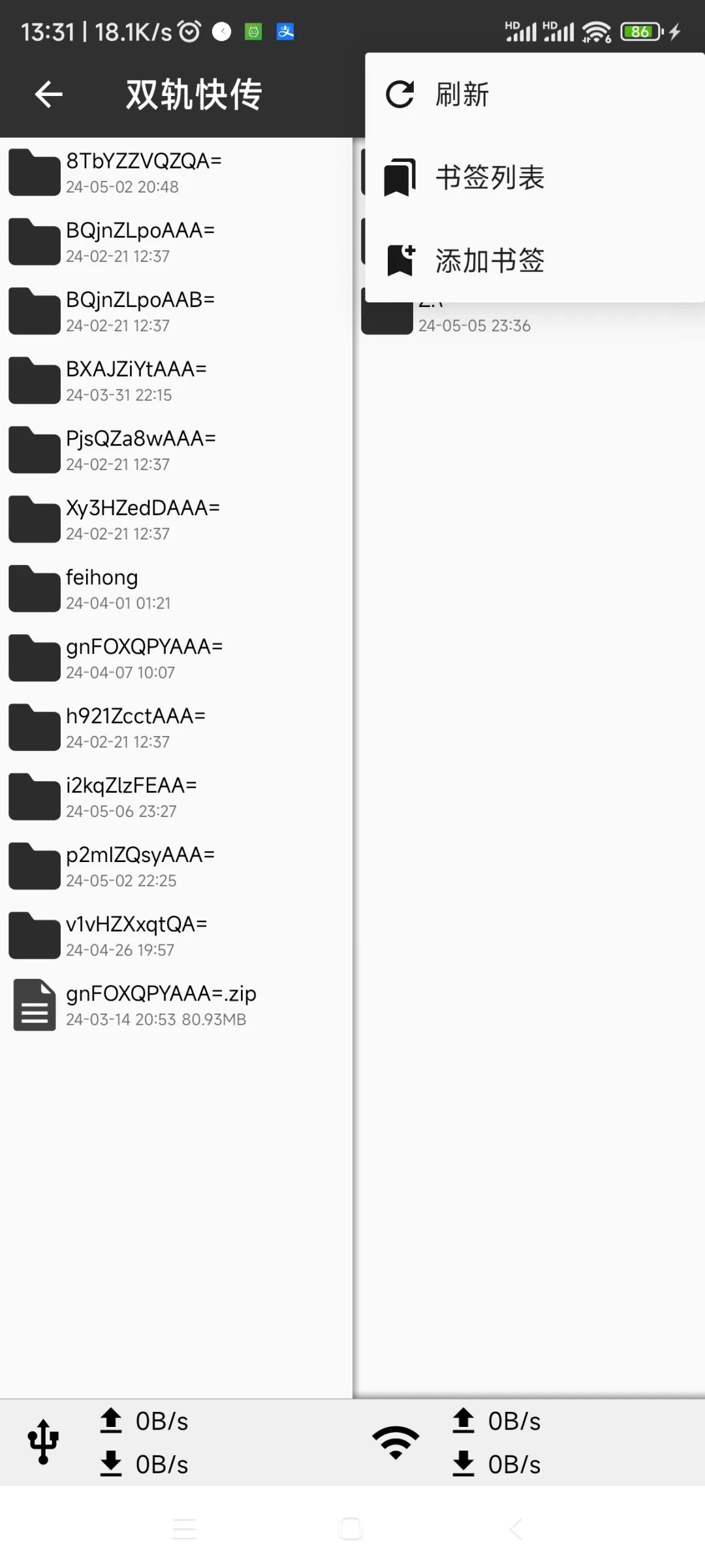 支持 USB / WIFI 两种模式传送文件到电脑的应用「双轨快传」文件传输采用了 MT 管理器双排模式左边文件列表是当前手机的文件列表,右边为电脑的文件列表。并且如果 ROOT 后,还支持访问 Android/data 的文件。
