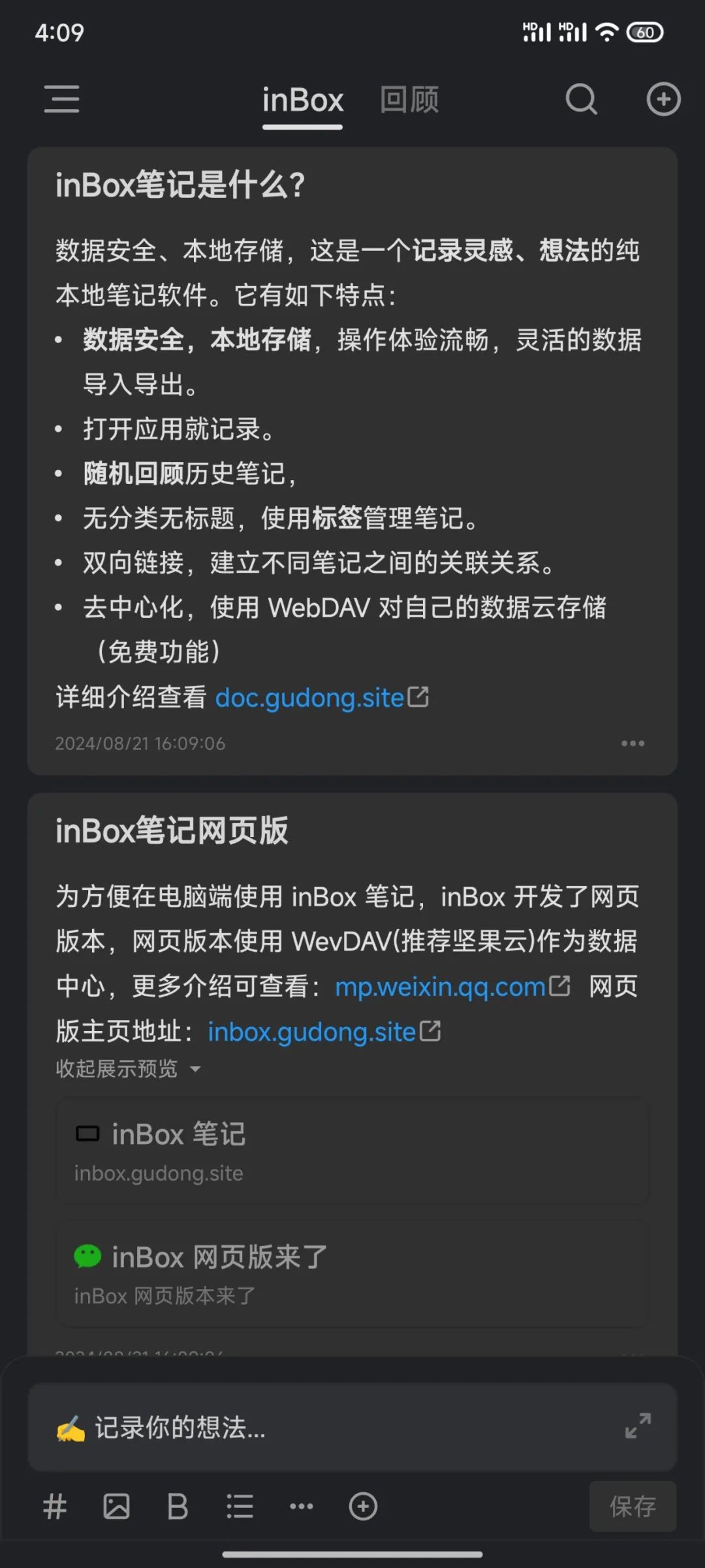 [安卓] inBox 笔记 - 本地优先的卡片笔记软件