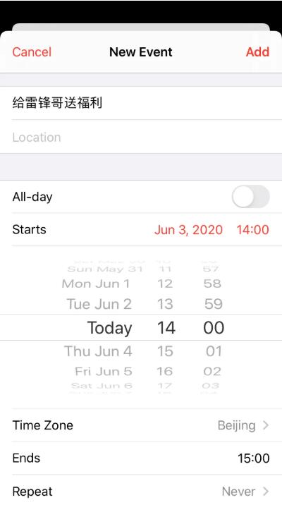 iOS用户使用自带日历设置事件时间时会发现默认给出的时间间隔是5分钟,那如果用户想将事件时间具体到每一分钟该怎么办呢?