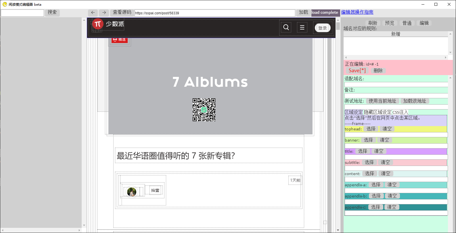 对于没有阅读模式规则的网站,也可以手动通过编辑器来修改,点击编辑,然后再点击你不想要的元素,添加规则,就可以隐藏了。