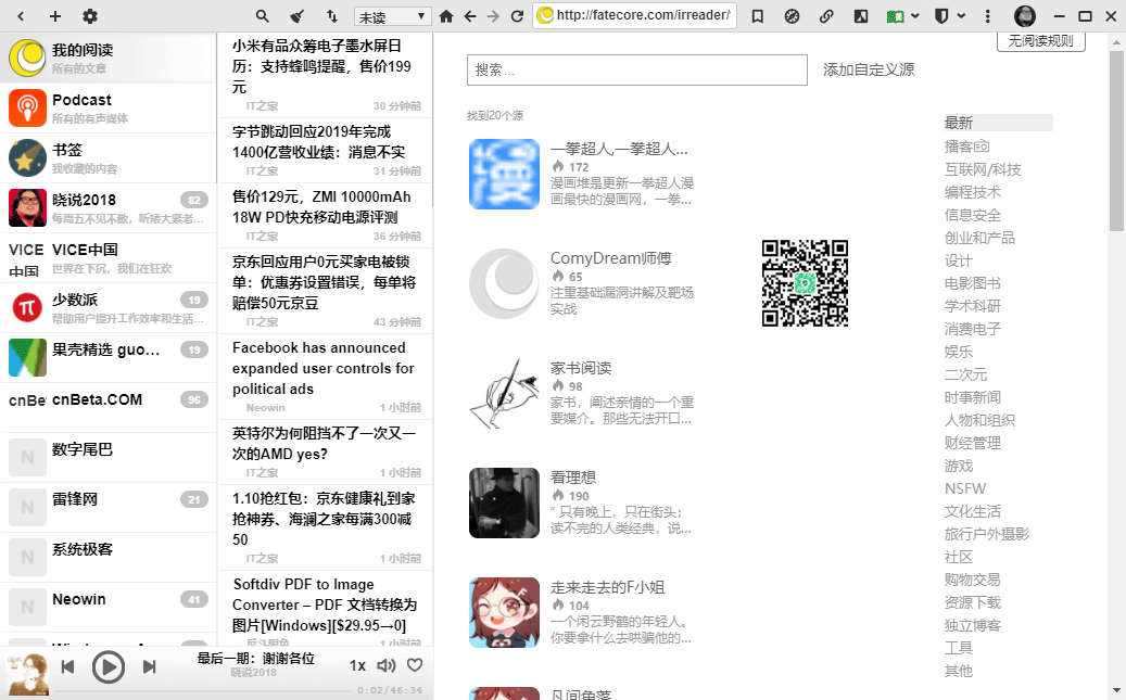 后来SoftGoing发现了这款「irreader」神器,这是一款本地客户端的RSS订阅器,说它是RSS,其实是全能的订阅,可以添加自定义源,还能订阅网页、播客等内容。支持 Windows / macOS 双平台。