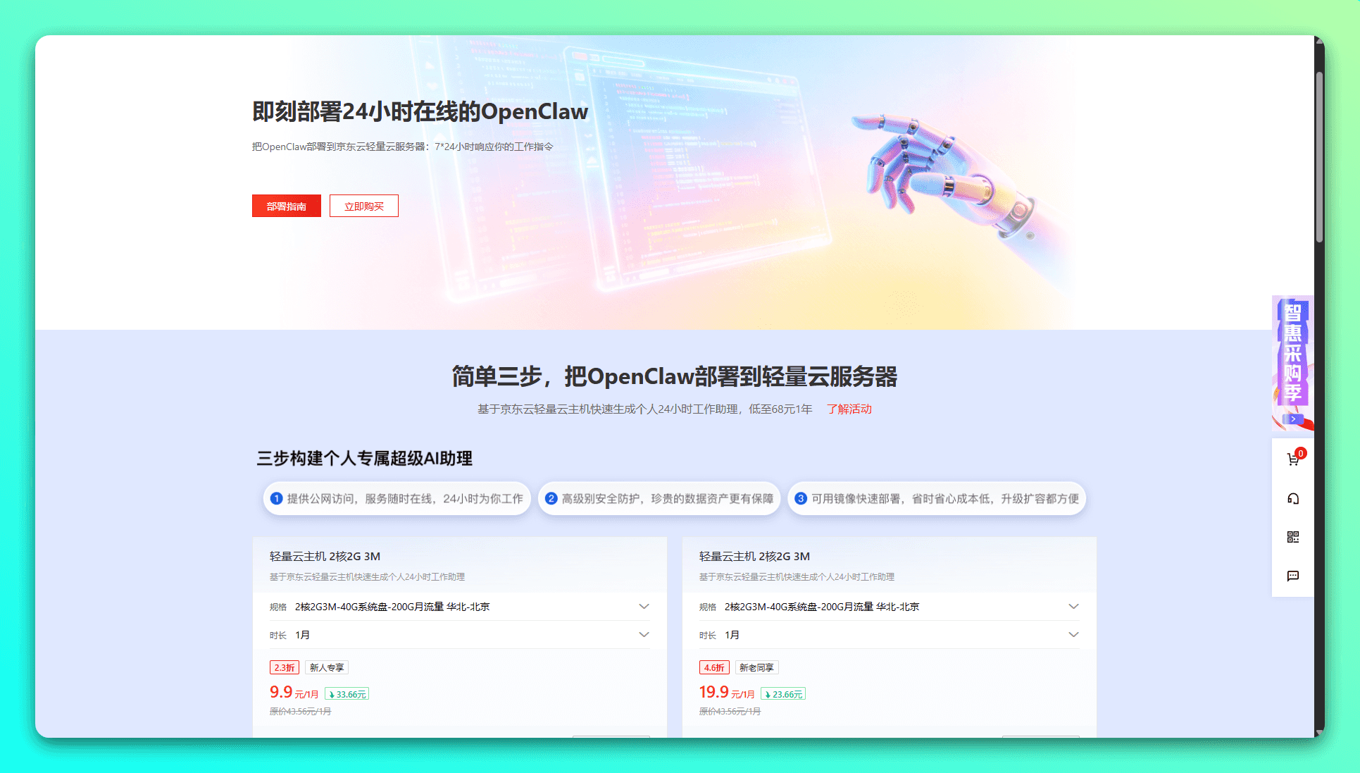 京东云全面上线 openclaw(Clawbot)!京东云轻量云主机现已预置 openclaw 应用镜像,无需手动配置环境, 2 步即可完成部署,让你的 AI 助手秒级上线、全天候待命。