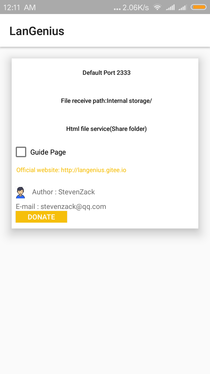 「局域网精灵」一款安卓的手机局域网传文件利器,安装以后,你的手机将变身一台 Web 服务器 ! 点击按钮添加你要分享的文件, 这些内容将展示在你的web主页上,主页地址为你的IP地址加上2333端口号(例如192.168.1.101:2333).