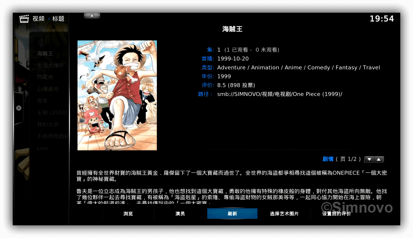 按照操作提示进行刷新后kodi会根据你的文件命名自动匹配相关结果,选择正确的结果并确认,