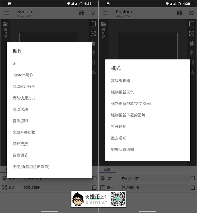 对小部件的打开方式你可以自定义动作,例如调用某个APP,或者某个动作、高级编辑器模式,反正只有你想不到的没有「KWGT」做不到的。会折腾的小伙伴,编辑器够你玩很久了。
