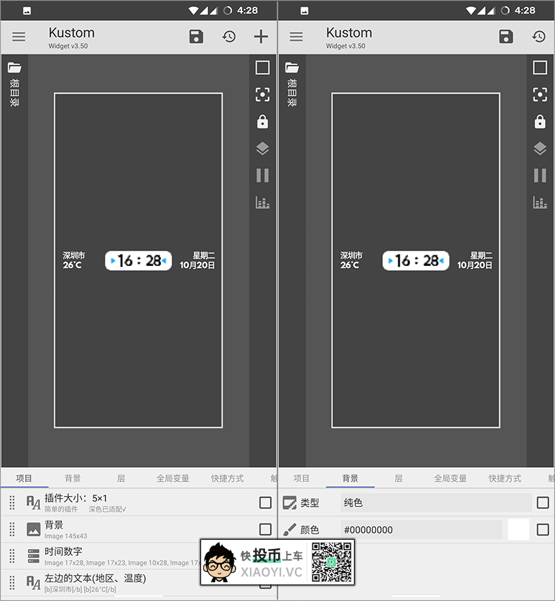 如果对小部件的风格不喜欢?「KWGT」提供了超强的编辑功能,可以对部件进行二次创作,例如修改字体大小、修改背景图片、修改颜色、动画特效,也可以自己添加其它元素,然后生成一个新的部件。