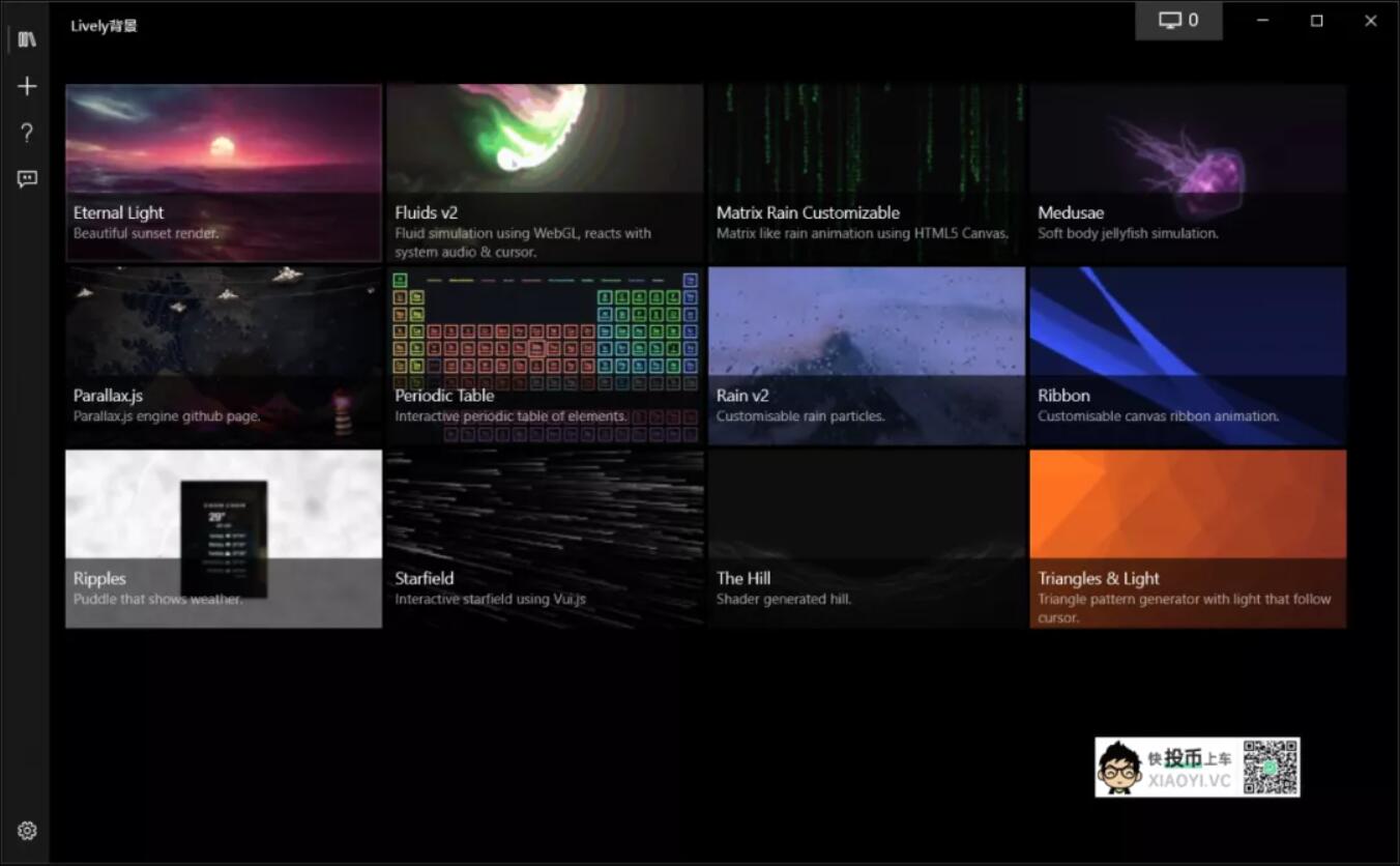 「Lively Wallpaper」默认只内置了 12 个动态壁纸可以使用,但效果都是蛮酷的,后续可能会新增更多动态壁纸。